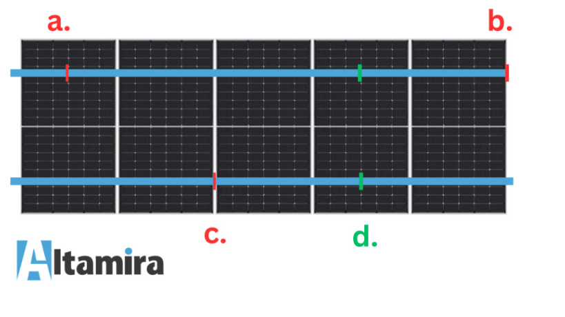 - Falsches Verbinden der Profile – Profile müssen fachgerecht verbunden werden, um Stabilität zu gewährleisten. Verbinden Sie keine Profile unter dem letzten Modul oder in der Lücke zwischen den Modulen.