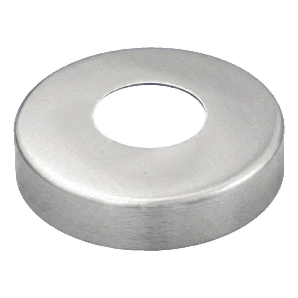 Abdeckrosette (Abdeckung) aus Edelstahl AISI 304 zur ästhetischen Abdeckung von Montagelöchern rund um Rohre mit Durchmesser 42,4 mm bei Geländern und Edelstahlkonstruktionen. Die satinierte Oberflächenausführung sorgt für ein elegantes, dezentes Erscheinungsbild und verdeckt gleichzeitig wirkungsvoll Unvollkommenheiten an der Durchgangsstelle des Pfosten durch das tragende Element.