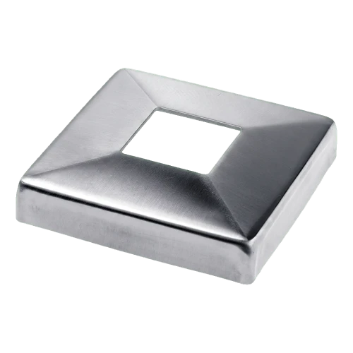 Die Rosette ist für Edelstahlgeländersysteme auf Basis quadratischer Profile 40×40 mm bestimmt. Ideal geeignet bei der Montage von Glas- und Stabgeländern in Treppenhäusern, auf Balkonen, Terrassen sowie Emporen. Verdeckt die Durchgangsstelle des Pfostens durch den Boden oder ein Konstruktionselement und gewährleistet eine saubere, ordentliche Ausführung.