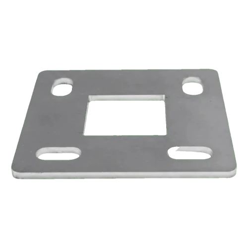 Quadratische Balusterträger-Grundplatte zum Anschweißen von Profilen 40×40 mm. Ermöglicht eine sichere und dauerhafte Befestigung des Balusterpfostens am Untergrund mittels Schweißverfahren. Gefertigt aus hochwertigem Edelstahl AISI 304 mit roher Oberfläche — fertig zum direkten Anschweißen in die Konstruktion ohne zusätzliche Bearbeitung.