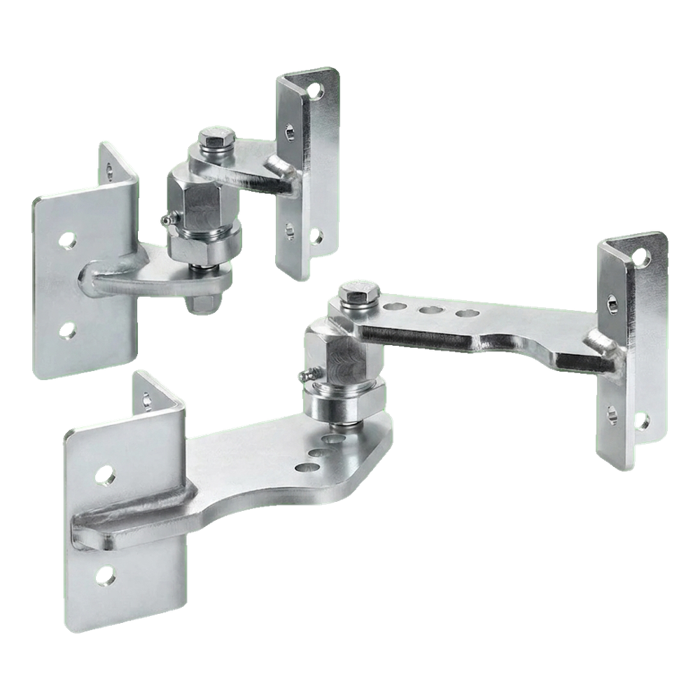Das Set ist für die professionelle Montage von Toren mit einem Gewicht bis zu 150 kg und einer maximalen Flügellänge bis zu 3 Metern bei einem Geländeanstiegswinkel bis zu 10° (~20%) bestimmt. Dank der Gelenke mit Schmiernippeln erfolgt die Wartung schnell und bequem — ohne die Notwendigkeit des Ausbaus der Scharniere.