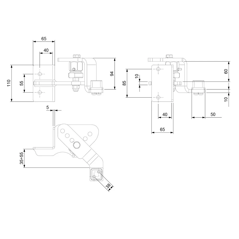 - Lochabstand Montage (vertikal): 55 mm (Träger) / 85 mm (Seitenblech)