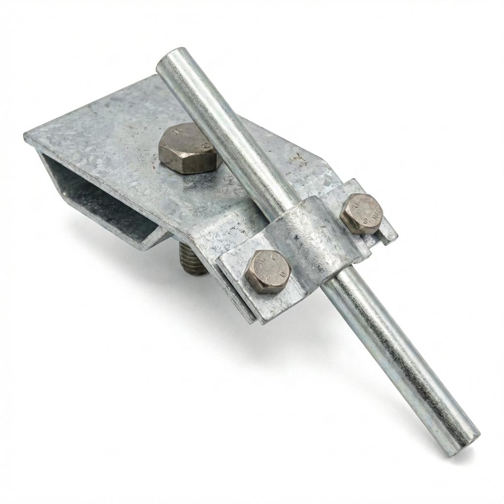 Der Rinnenhalter ist ein zuverlässiges Element des Blitzschutzsystems, das zur Stabilisierung des Blitzableiters beim Übergang über die Dachrinne entwickelt wurde. Dank der soliden Konstruktion aus galvanisch verzinktem Stahl gewährleistet er eine dauerhafte und sichere Befestigung von Rundleitern mit einem Durchmesser von Ø8–10 mm.
