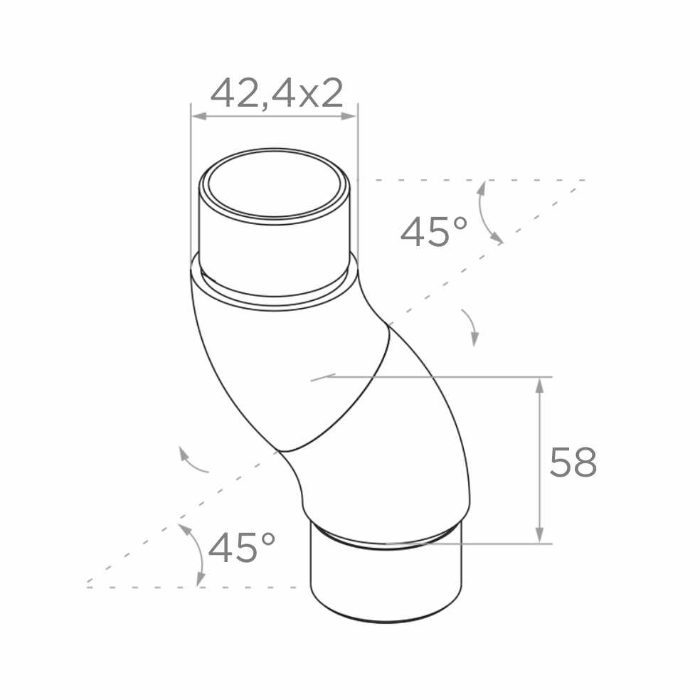 Drehbarer Geländerbogen für einzuklebende Montage in Rohr 42,4x2 mm – Edelstahl AISI 304 satiniert