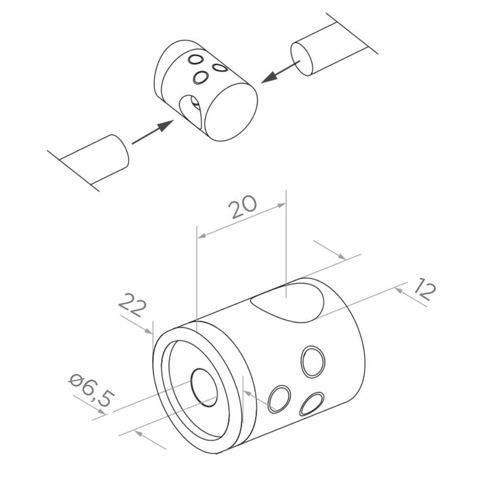 Der Halter wird direkt am Hauptrohr des Geländers montiert und ermöglicht die durchgehende Führung des Füllstabes, was die Montage erheblich beschleunigt und das Erreichen gleichmäßiger, wiederholbarer Abstände zwischen den Stäben erleichtert. Integrierte Klemmschrauben gewährleisten eine sichere und dauerhafte Befestigung des Stabes im Halter.