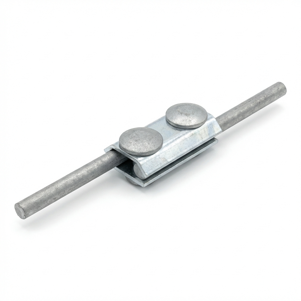 Der Durchgangsverbinder 2-Loch einfach dient zur Herstellung dauerhafter Kreuzverbindungen von Rundleitern in Blitzschutzanlagen. Dies ist ein zuverlässiges Element des Blitzschutzsystems, ideal für den Einsatz sowohl auf Dächern als auch in erdverlegten Anlagen.