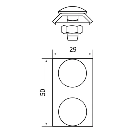 Die Abmessungen des Verbinders betragen 29 × 50 mm, was eine kompakte Bauweise bei gleichzeitiger voller Funktionalität gewährleistet. Dank der geringen Abmessungen eignet sich der Verbinder hervorragend für Bereiche mit begrenztem Montageraum.