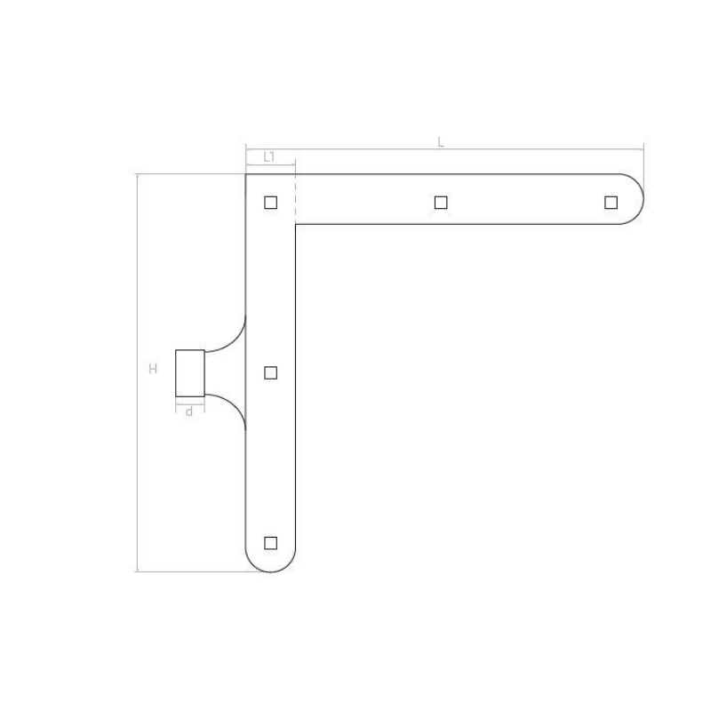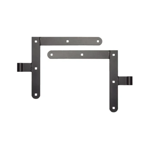 Set aus vier Eckbändern für die Montage großer Türen, Gartentore und Tore — besonders in Wirtschaftsgebäuden und Einfriedungsobjekten. Das Set umfasst 4 Bänder für zwei Flügel, was die Montage mit einer Bestellung ermöglicht, ohne die Elemente separat zusammenstellen zu müssen.