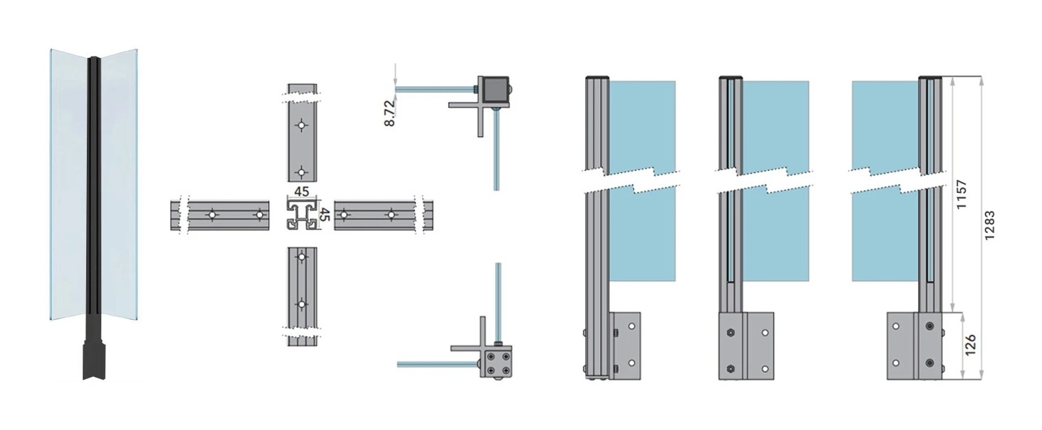 - Profilquerschnitt: 45×45 mm — hohe Steifigkeit und Stabilität an Eckpunkten