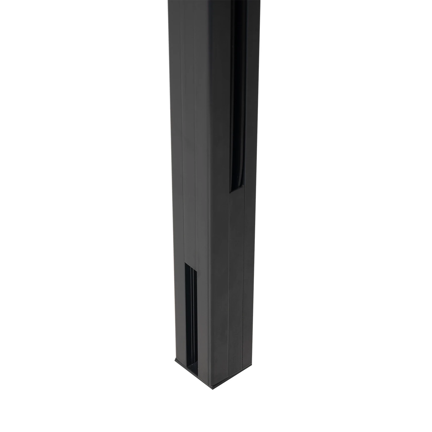 Die dunkelgraue Oberfläche in der Farbe RAL 7021 (Pulverbeschichtung) garantiert eine dauerhafte, widerstandsfähige Beschichtung, die mit Beton, Glas und Stahl harmoniert. Der Pfosten bewährt sich im Wohnungsbau, bei Villen und gewerblichen Objekten – von Balkonen und Terrassen bis zu Erholungsbereichen. Parameter, die durch statische Prüfungen und Festigkeitszertifikate bestätigt wurden, geben Gewissheit über die Einhaltung der geltenden Sicherheitsnormen.