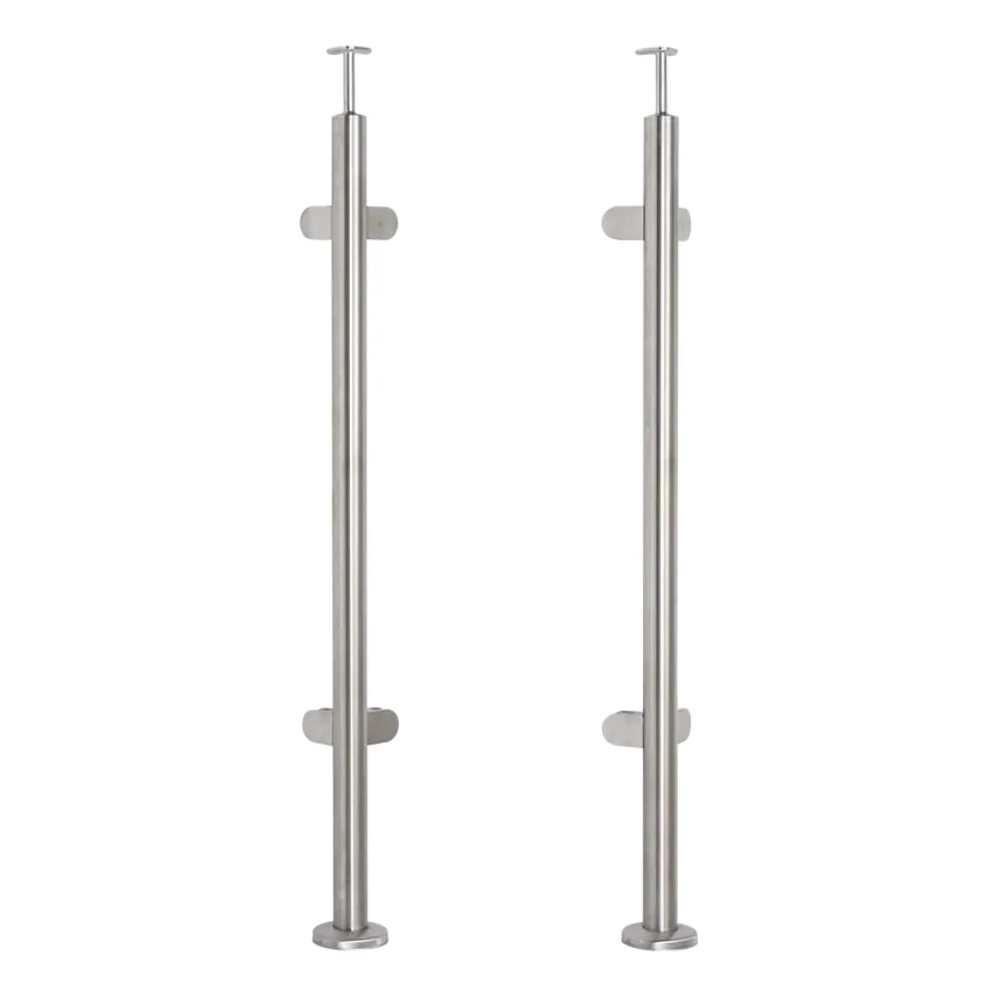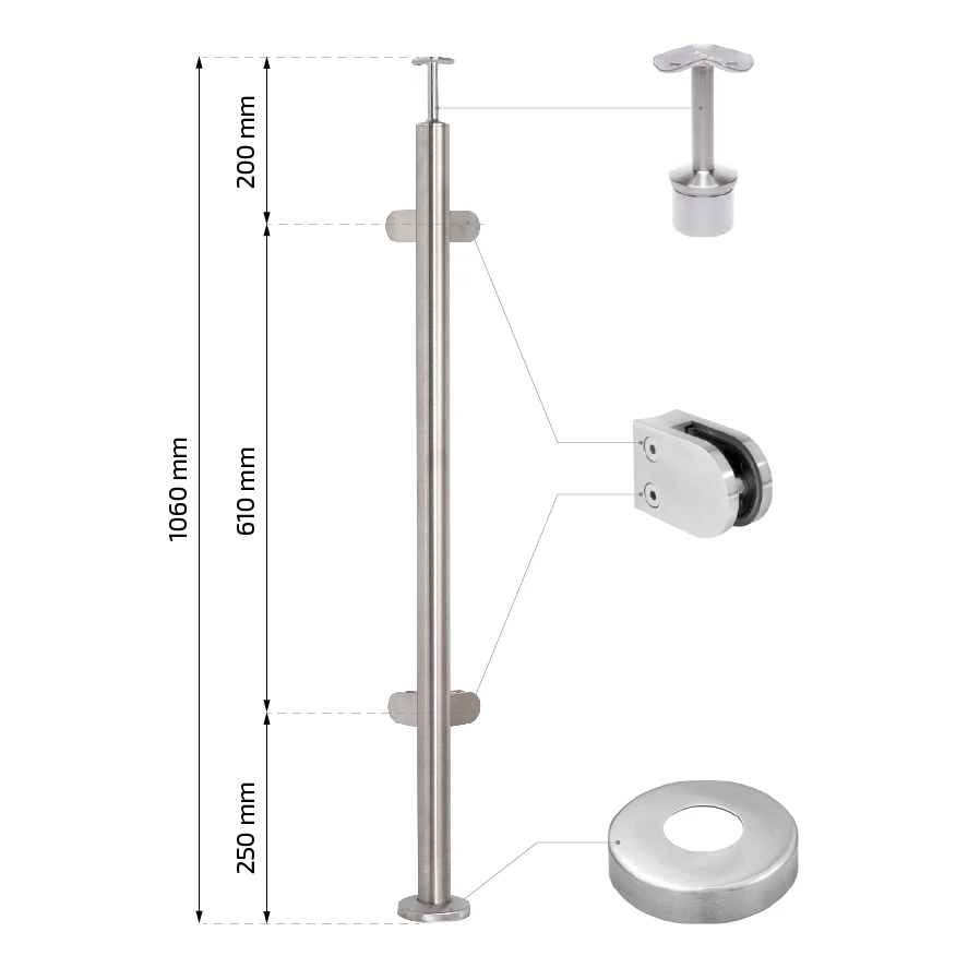 Eckpfosten für Glas-Balustrade ø42,4x1060/1102,4mm 4 Halterungen geschliffen