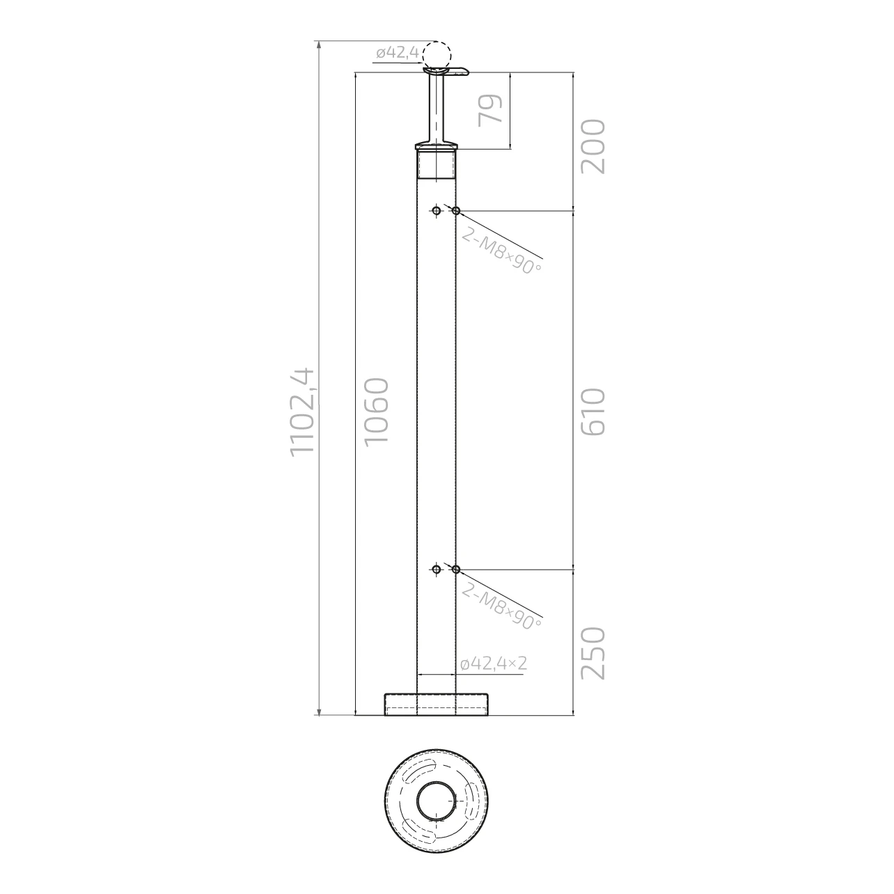 - Handlaufdurchmesser: ø42,4 mm