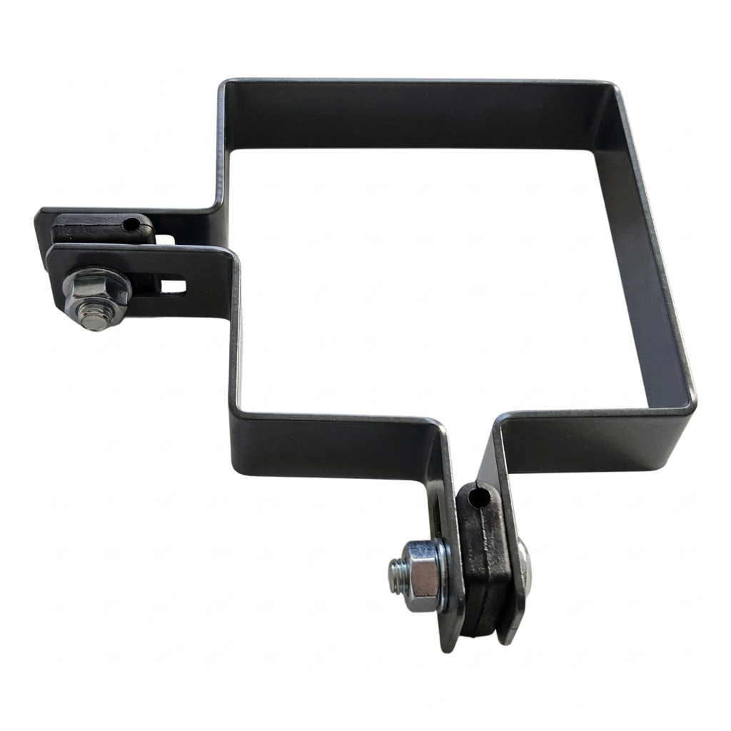Die Schelle ist perfekt auf den Pfostenquerschnitt 100×100 mm abgestimmt, was eine stabile und sichere Verbindung der Zaunkonstruktion garantiert. Die nierenförmigen Montagelöcher ermöglichen eine Positionsregulierung des Paneels relativ zum Pfosten – erleichtern die Ausrichtung des Zauns auch auf unebenem Gelände.