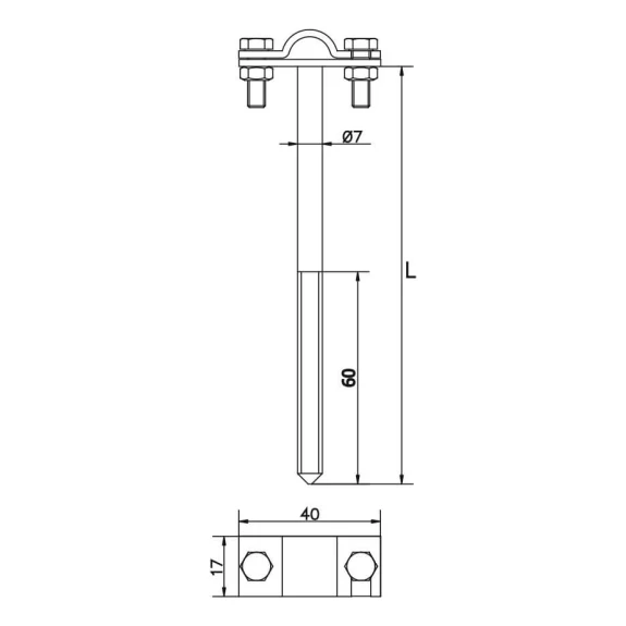 Einschraubbare Drahthalterung h=12cm galvanisch verzinkt
