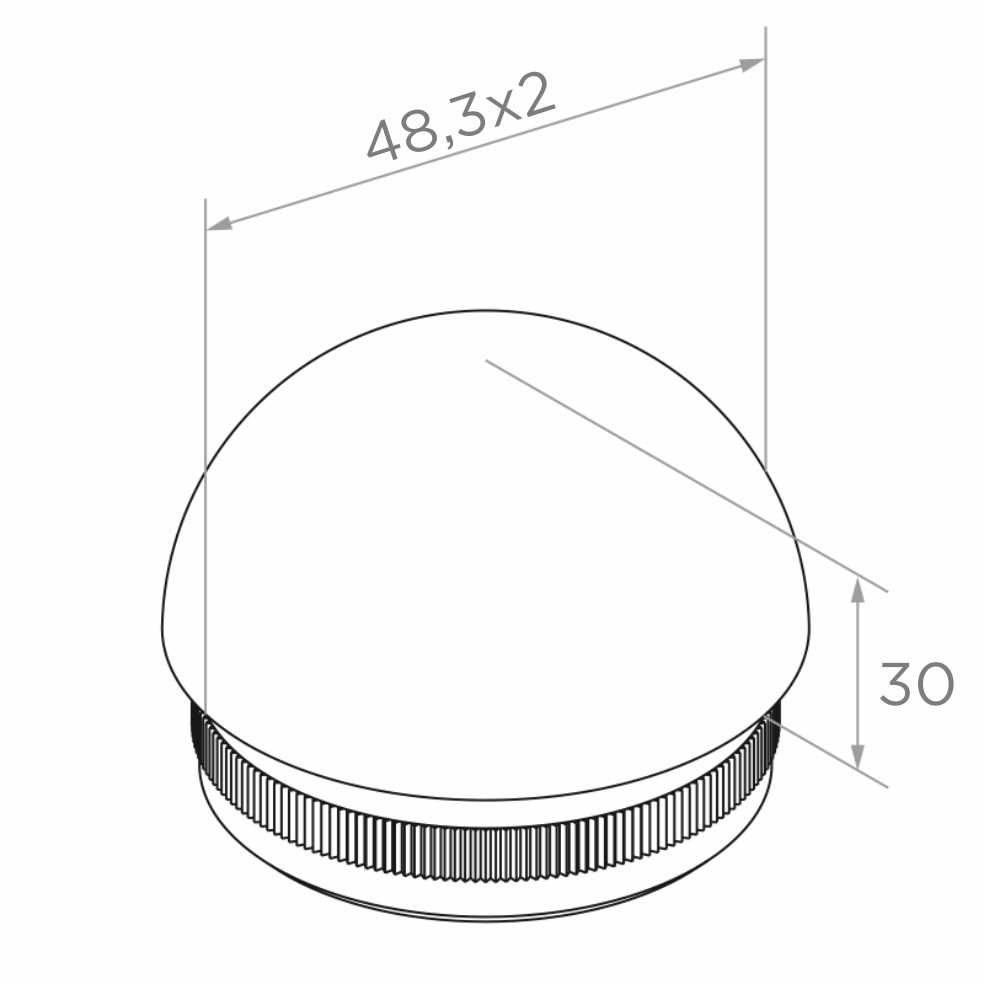 Die ellipsoidale Kuppel verleiht dem Abschluss ein elegantes, abgerundetes Profil, das sich perfekt in moderne Edelstahl-Geländersysteme einfügt. Die satinierte Oberfläche ist fingerabdruckresistent und pflegeleicht.