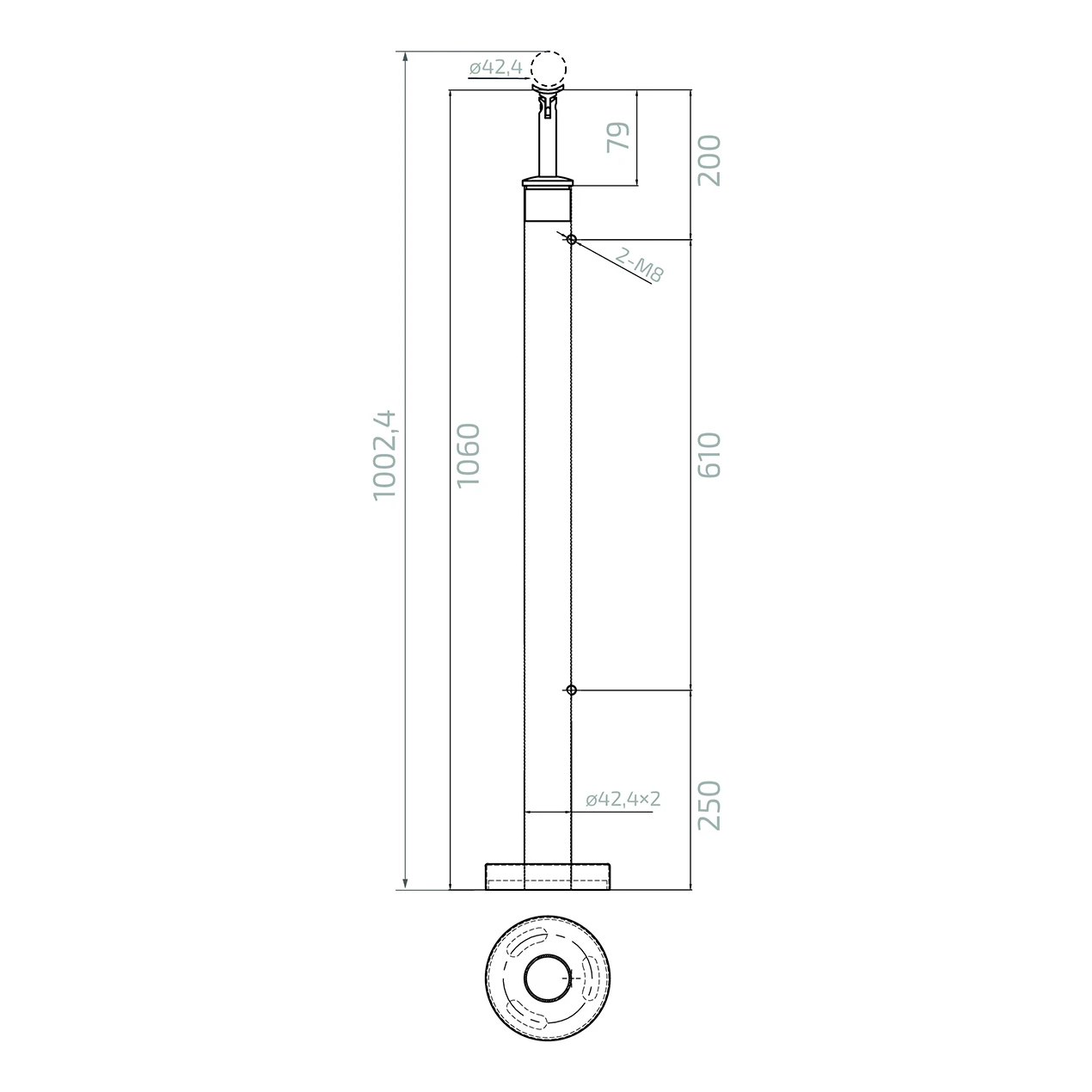 - Pfosten ø 42,4 × 2 mm, Höhe 1060 mm