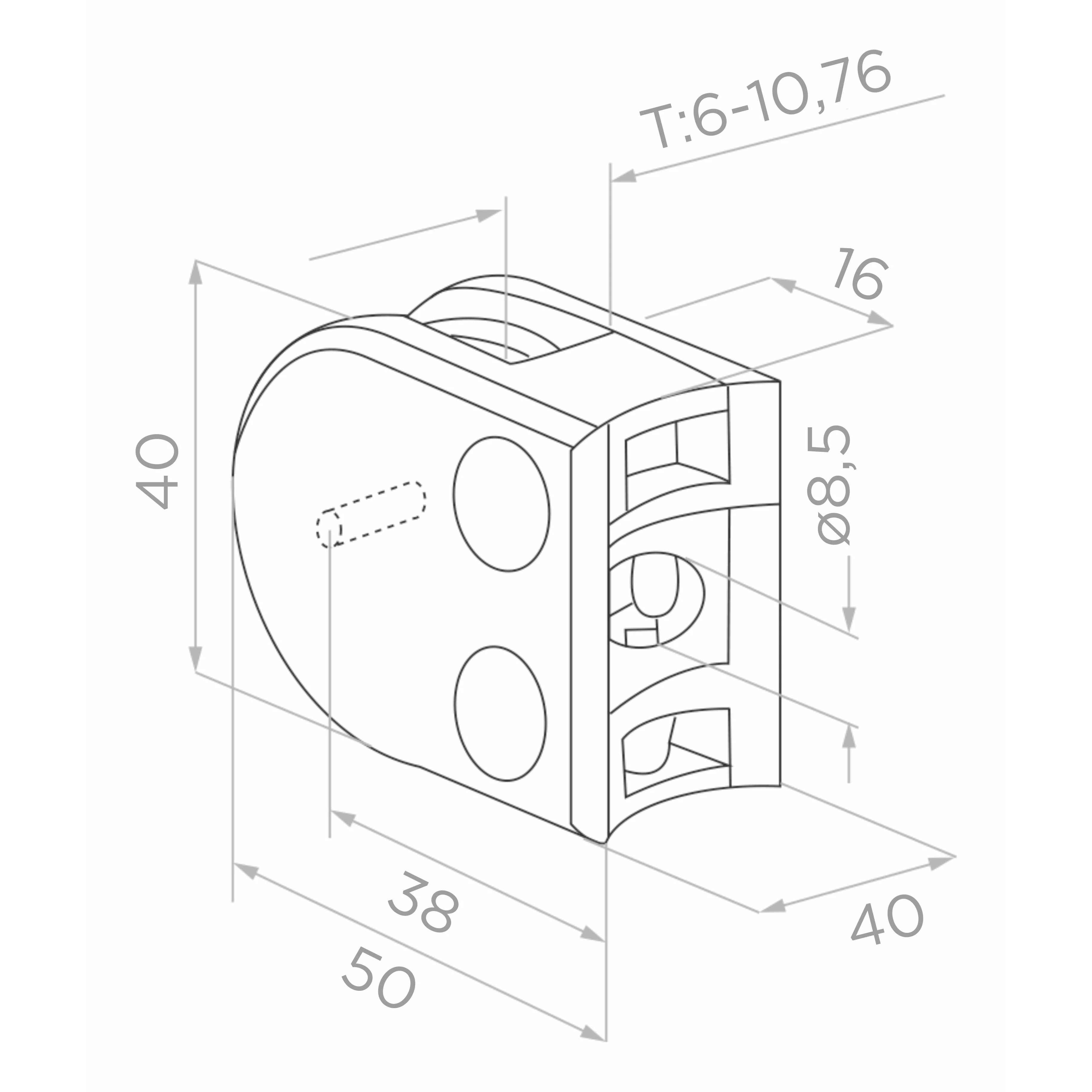 - Durchmesser der Befestigungsbohrung: ø 8,5 mm