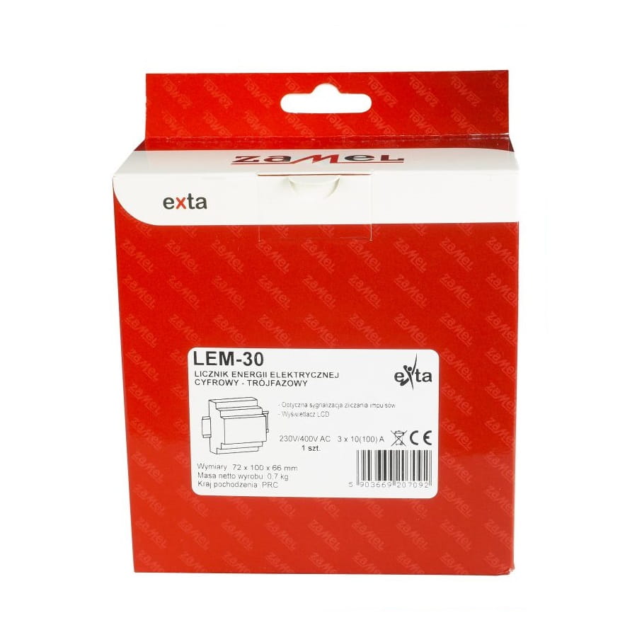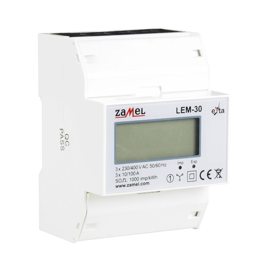 Energiezähler 3-phasig 100A LCD LEM-30 ZAMEL ist ein Gerät zur Überwachung des Energieverbrauchs in dreiphasigen Netzen, ideal für gewerbliche und industrielle Anwendungen.