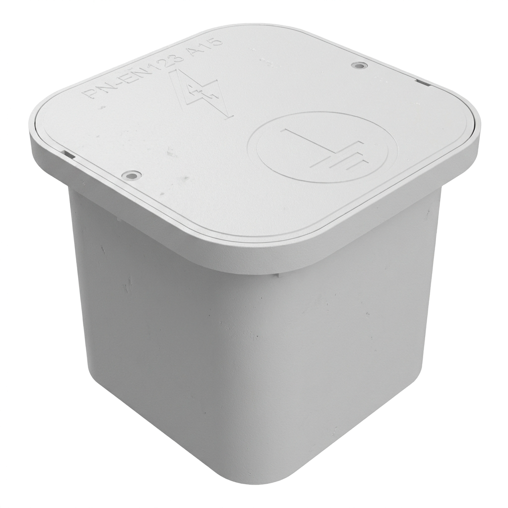Das Produkt entspricht der Norm PN-EN 62305, was die Erfüllung der Anforderungen an Blitzschutzsysteme garantiert. Die Box erfüllt auch die Anforderungen der Norm PN-EN 124 A15, die die Belastungsklasse für im Erdreich montierte Abdeckungen festlegt.