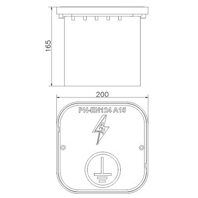 Erdkontrollbox aus Kunststoff mit den Abmessungen 200×200×165 mm, vorgesehen für die Montage von Kontrollverbindungen und Ableitungen im Erdreich. Die ideale Lösung überall dort, wo die Blitzschutzanlage einen einfachen Zugang zu unter der Geländeoberfläche verborgenen Verbindungen erfordert.