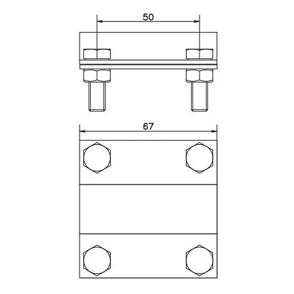 Die Außenabmessungen des Verbinders betragen 50 × 67 mm, was eine kompakte Bauweise bei voller Funktionalität gewährleistet. Die geringe Größe erleichtert die Montage auf engstem Raum, z. B. in Revisionsschächten oder an der Erdungsschiene.