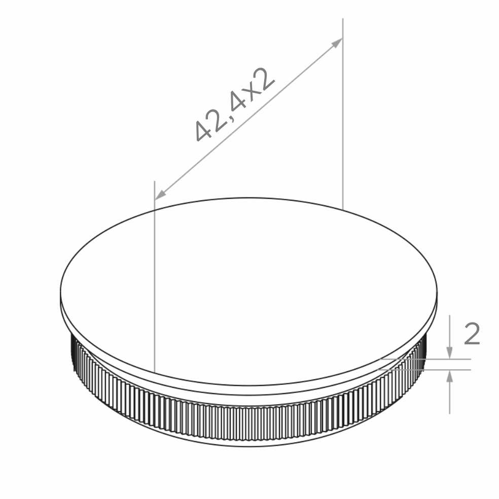 Flacher Einschlagstopfen für Geländerrohre mit Außendurchmesser 42,4 mm und Wandstärke 2 mm. Ästhetisches Abschlusselement, das offene Rohrenden effektiv verdeckt und das Profilinnere vor Niederschlag, Feuchtigkeit und Korrosionsentwicklung schützt. Dank der flachen Oberfläche sorgt er für ein elegantes, minimalistisches Erscheinungsbild des Geländers.