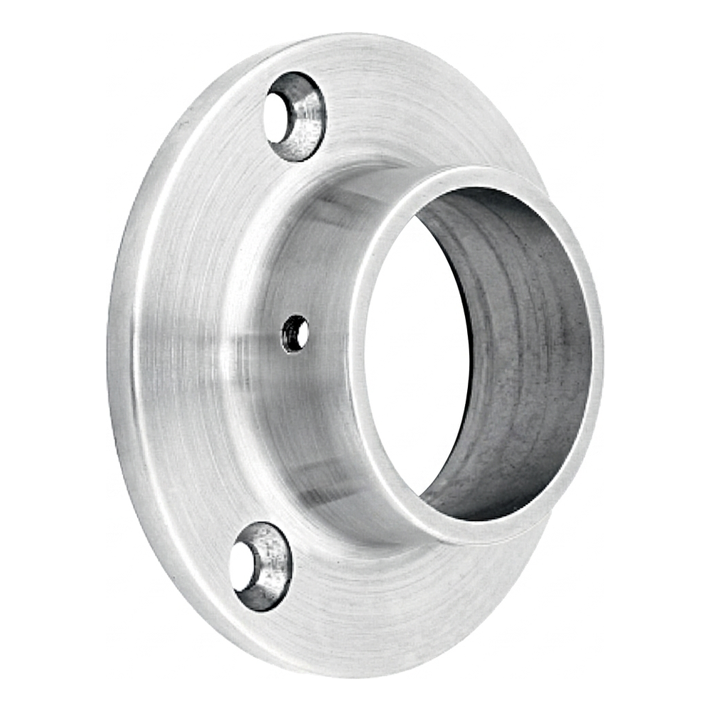 Montageflansch (Axialbefestigung) zur direkten Befestigung eines Geländerrohrs mit einem Durchmesser von 42,4 mm an der Wand. Ermöglicht eine schnelle und sichere Montage von Handläufen ohne die Notwendigkeit von Geländerpfosten – ideale Lösung überall dort, wo der Handlauf entlang der Wand geführt werden soll.