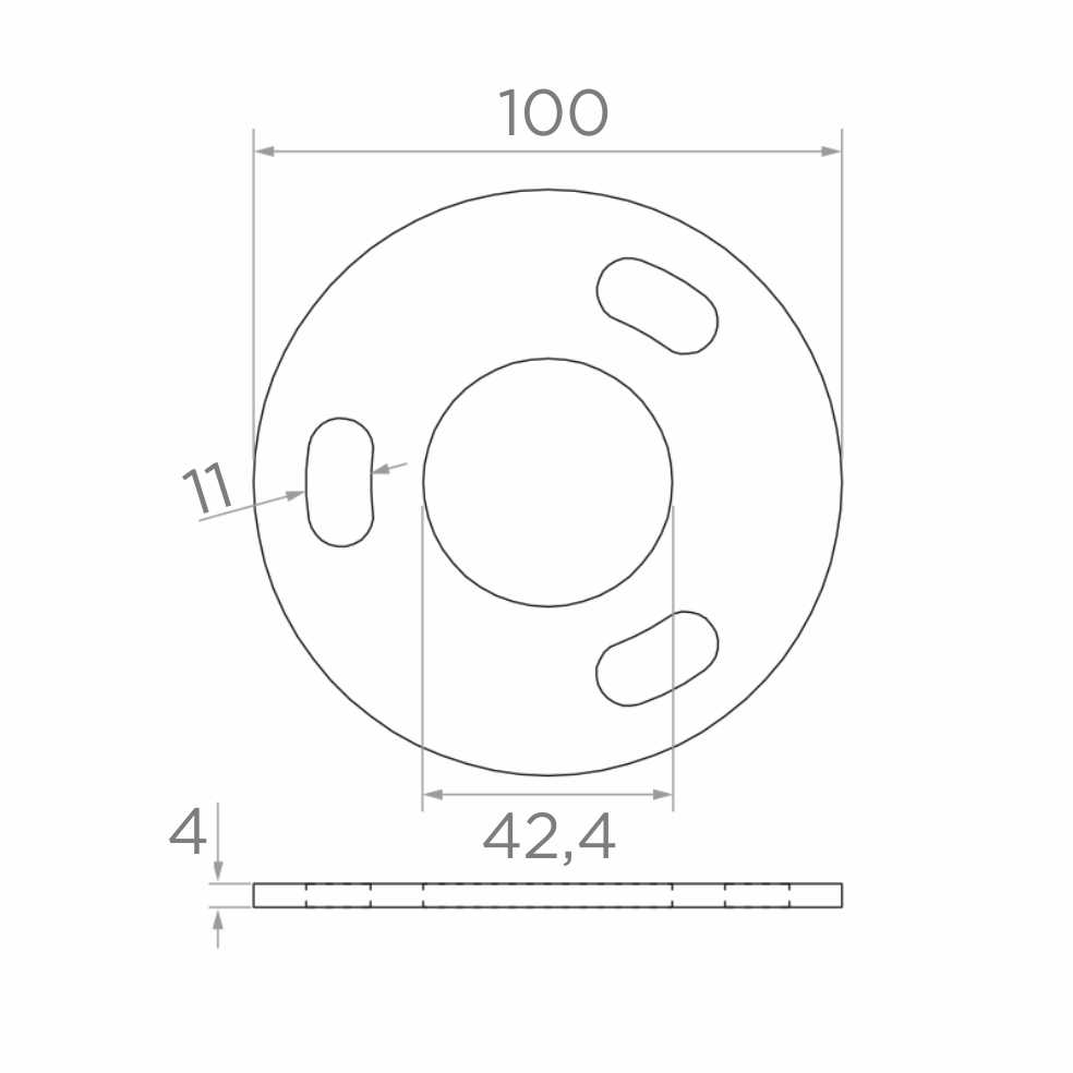 Geländerpfostenbasis zum Schweißen ø 100 mm – Edelstahl AISI 304, System 42,4