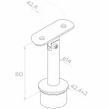 Die Halterung wird durch Kleben montiert — die untere Hülse wird mittels Edelstahlkleber im Inneren des Pfostenrohrs Ø 42,4 × 2 mm eingesetzt. Die obere Aufnahme ist an Handläufe mit Durchmesser 42,4 mm angepasst und ermöglicht die Einstellung beliebiger Neigungswinkel dank des Gelenks mit Arretierung durch Inbusschraube. Diese Lösung bewährt sich besonders bei Treppengeländern, wo der Winkel des Treppenlaufs eine individuelle Anpassung des Handlaufs an die Pfosten erfordert.