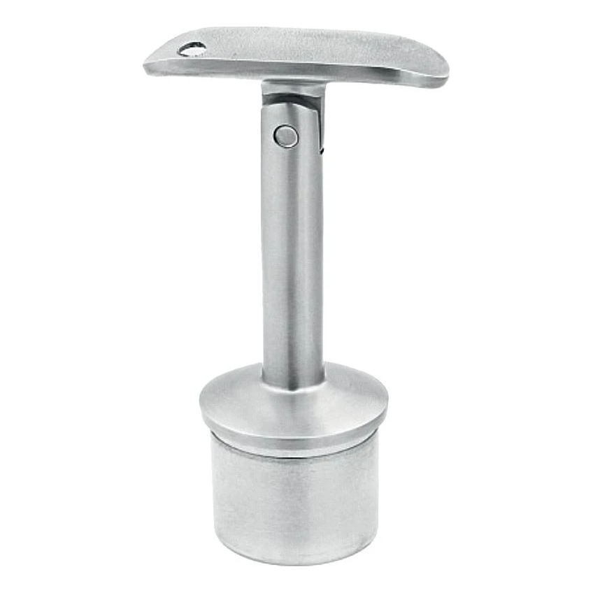 Gelenk-Handlaufhalter zum Einkleben in den Pfosten ist ein wichtiges Konstruktionselement von Edelstahl-Geländern. Dank des Gelenkmechanismus ermöglicht er die stufenlose Einstellung des Handlauf-Neigungswinkels, was ihn zur idealen Lösung beim Montieren von Treppen- und geneigten Geländern macht, wo der Winkel zwischen Pfosten und Handlauf nicht rechtwinklig ist.