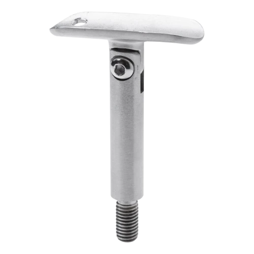Element für die Handlaufmontage in Edelstahlgeländern — sowohl für Innen- als auch Außenanwendungen. Das Gelenk bewährt sich besonders in Treppengeländern, wo der Handlaufneigungswinkel dem Gefälle des Treppenlaufs entsprechen muss. Das Außengewinde M8 ermöglicht eine schnelle Montage durch direktes Einschrauben in den Geländerpfosten, was die Installationszeit verkürzt und das Schweißen überflüssig macht.