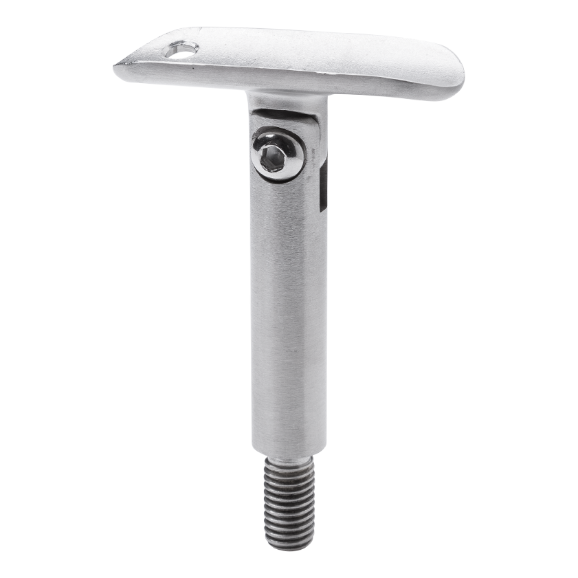 Gelenkstütze für Handlauf aus Edelstahl AISI 304 für Geländersysteme mit Rohrdurchmesser 42,4 mm. Durch den Gelenkmechanismus ermöglicht das Element eine stufenlose Regulierung des Handlauf-Neigungswinkels — eine unverzichtbare Lösung bei der Montage von Treppengeländern, wo eine präzise Anpassung der Handlaufneigung an den Treppenlauf erforderlich ist.