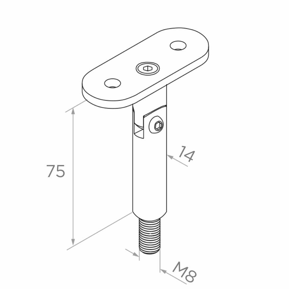 Gelenkstange für Handlaufstütze ø 14×75 mm mit flachem Blech – AISI 304 satiniert, Gewinde M8