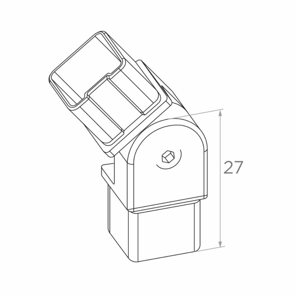 Der Verbinder ist für Geländersysteme bestimmt, die auf Quadratprofilen 40x40 mm basieren. Er ermöglicht die Herstellung von Winkelverbindungen an Treppen und Rampen, wo sich der Neigungswinkel des Handlaufs je nach Projekt ändert. Das Gelenk ermöglicht eine präzise Winkeleinstellung direkt auf der Baustelle und eliminiert die Notwendigkeit des vorherigen Zuschneidens von Elementen auf einen bestimmten Winkel. Das Produkt ist für die Verwendung mit Anaerob-Kleber bestimmt — wir empfehlen die Verwendung von speziellem Kleber für Edelstahl-Geländerverbindungen.