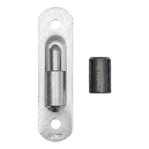 Im Set befindet sich ein Stahlschild mit Kugelzapfen sowie eine Buchse (Pfanne), die das Gegenelement des Scharniers bildet. Durch die präzise Rollung der Elemente arbeitet das Scharnier leise und gleichmäßig, was besonders bei häufig geöffneten Einfahrtstoren und Gartentüren von Bedeutung ist.