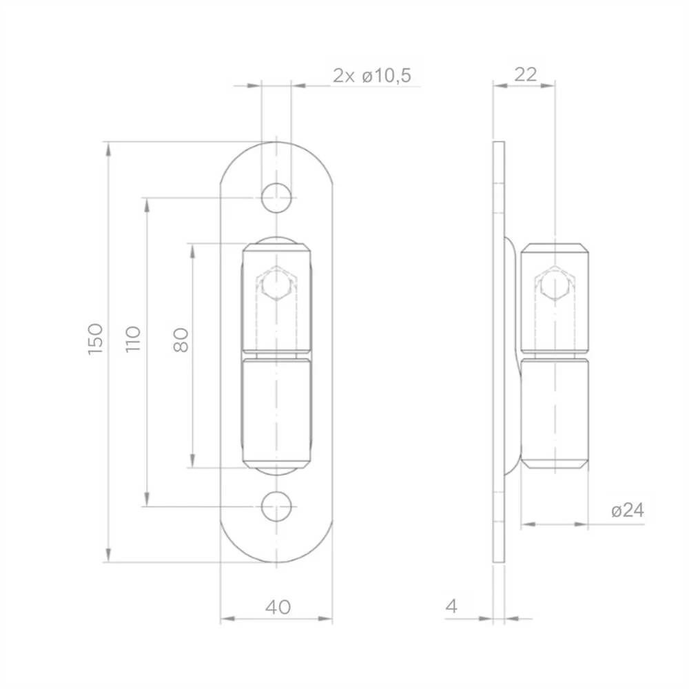 Gerolltes Kugelscharnier ø 24 mit Schild 150×40 mm für Tore und Türen