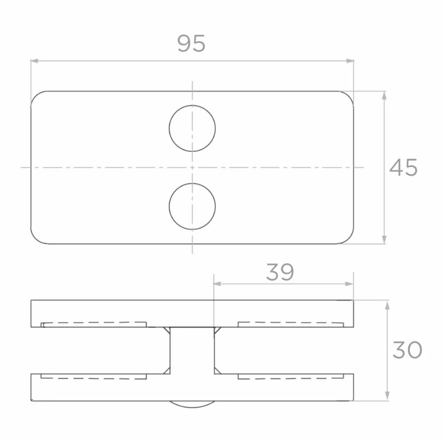 Glashalter 180° Satin 95×45 mm – Edelstahl AISI 304, Glas 6–12,76 mm