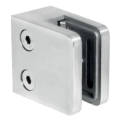 Glashalter 45x45x26 mm – Edelstahl AISI 304, Satin, Flachsystem