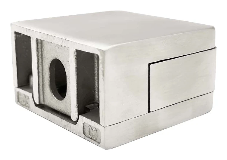 Rechteckiger Glashalter mit Träger für die professionelle Befestigung von Glasscheiben mit einer Stärke von 6 bis 10,76 mm. Gefertigt aus Edelstahl AISI 304 in Satin-Finish, überzeugt er überall dort, wo Ästhetik und Langlebigkeit gefragt sind – bei Geländern, Glastrennwänden und Verkleidungselementen.