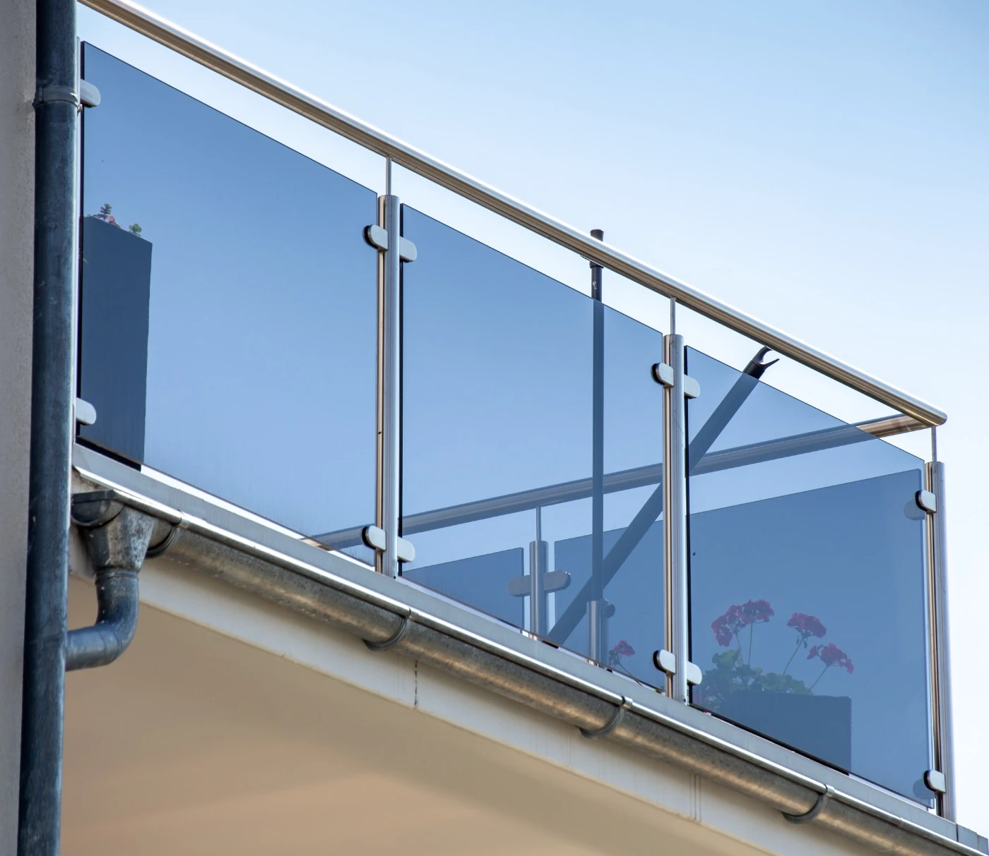 - Stabilisierung der Glasscheibe im Geländer und Aufwertung der Gesamtoptik der Konstruktion