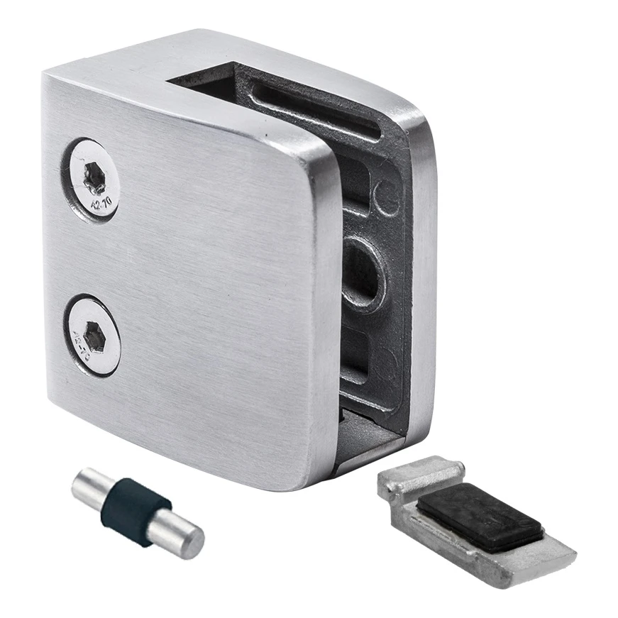 Glashalter 8-12,76 mm 52x52x32 mm Halterung und Pin AISI 304 Flachsystem Satin