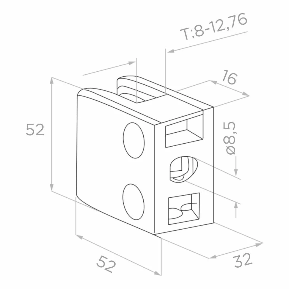 - Glashalter 52×52×32 mm