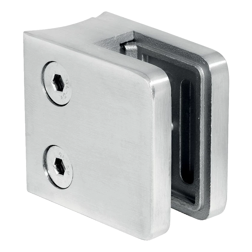 Rechteckiger Glashalter 45×45×26 mm aus Edelstahl AISI 304 in polierter Ausführung (Spiegelglanz). Das Produkt ist zur Befestigung von Glasscheiben mit einer Stärke von 6 bis 10,76 mm an Rohrpfosten mit einem Durchmesser von O42,4 mm vorgesehen. Die solide Konstruktion und die hochwertige Oberfläche machen den Halter zur idealen Wahl für Glasgeländer, Trennwände sowie Innen- und Außenverkleidungen.