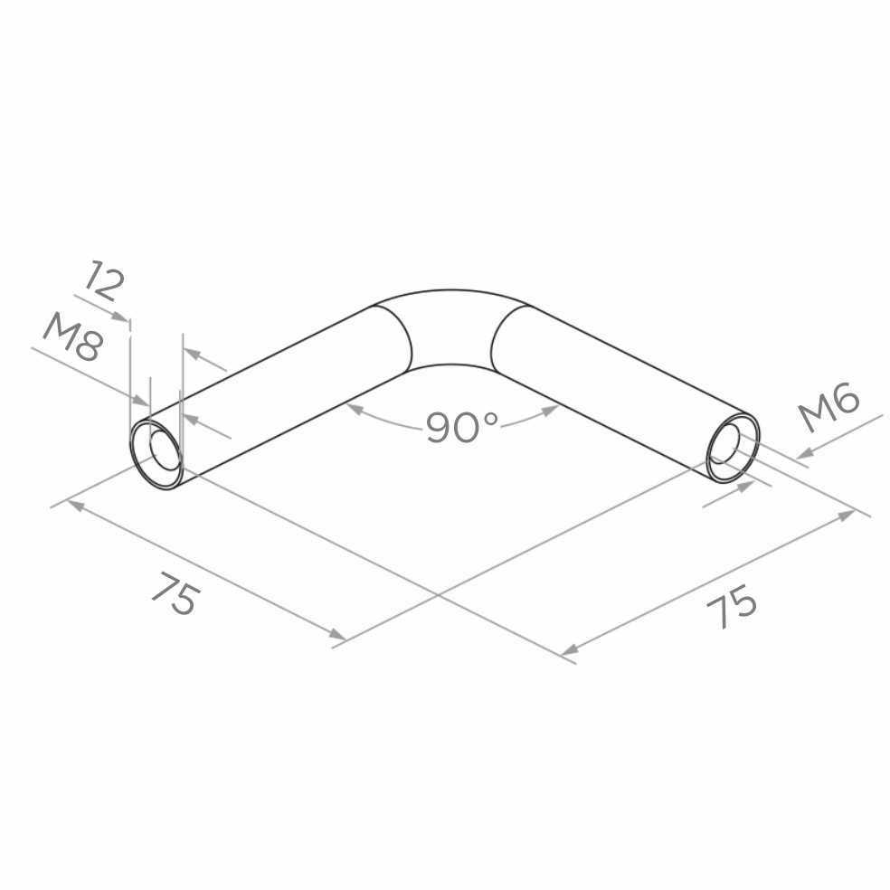 Beide Arme mit einer Länge von 75 mm sind mit Innengewinden (M8 und M6) versehen, was ein schnelles und sicheres Einschrauben der Stütze in die anderen Geländerkonstruktionselemente ermöglicht. Die universelle Bauart erlaubt den Einsatz in verschiedensten Montagekonfigurationen.