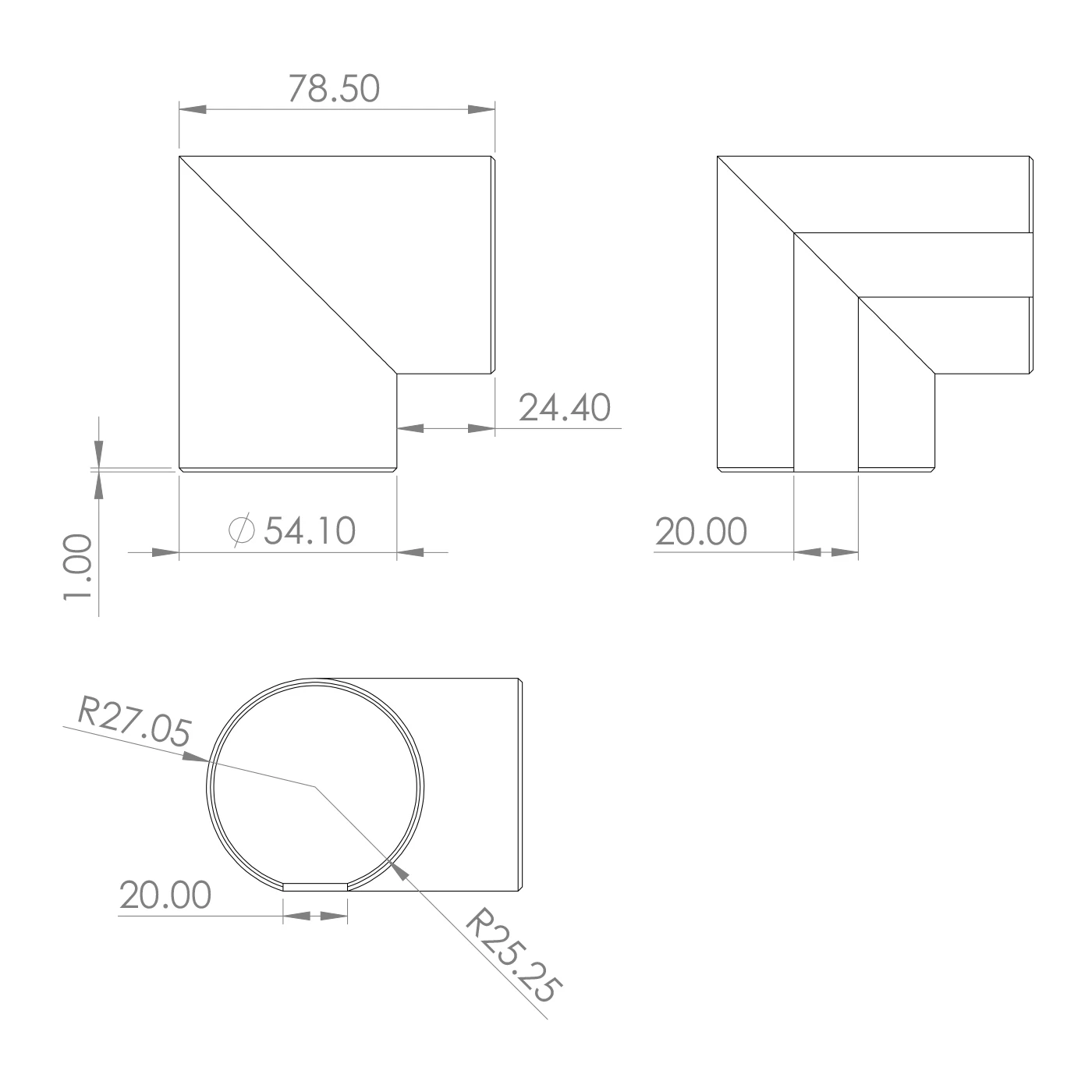 Der 90° Bogen Kozza ist ein präzise gefertigtes Eckverbindungsstück für den Bau von Handlauf- und Geländersystemen aus runden Aluminiumhandläufen mit Ø 40 mm. Er ermöglicht eine ästhetische und stabile Verbindung zweier Handlaufabschnitte im rechten Winkel – ideal geeignet für Ecken von Treppen, Terrassen, Balkonen und Zwischengeschossen.