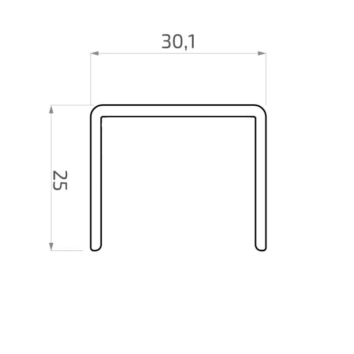 Das Profil mit rechteckigem Querschnitt 30,1 × 25 mm gewährleistet eine stabile Befestigung an der Glaskante und einen ergonomischen Griff. Die Werklänge von 5000 mm ermöglicht bequemes Ablängen und Anpassen an die Abmessungen des konkreten Projekts ohne übermäßigen Verschnitt.