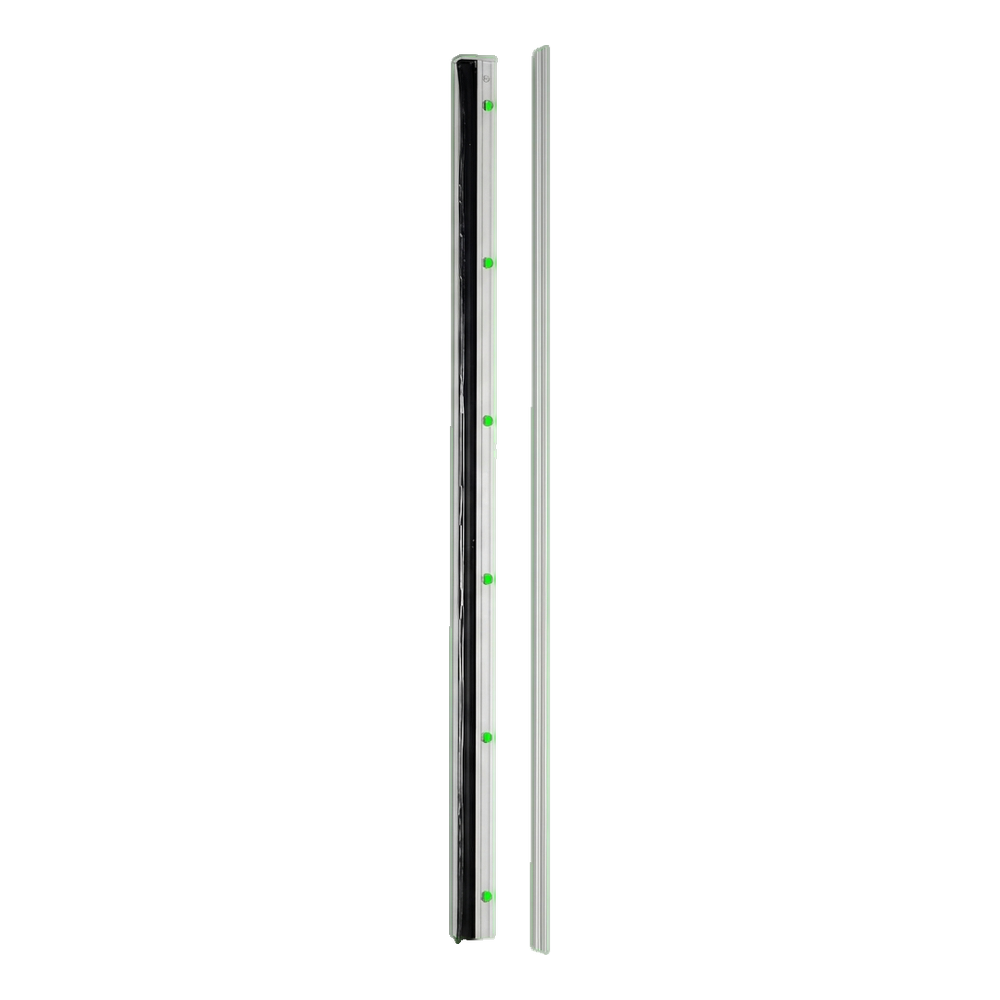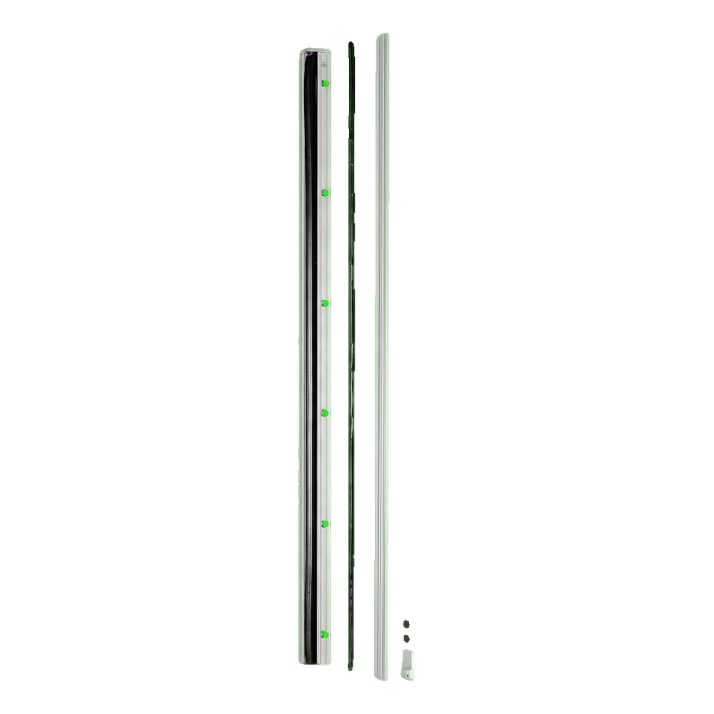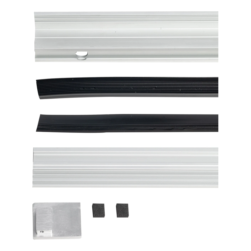 Die Bilder unten zeigen die aufeinanderfolgenden Phasen der Montage des Sets: von der Anordnung der Komponenten über das Einschieben der Dichtung in das Profil (grüne Markierungen zeigen die Befestigungspunkte) bis zum fertigen, montierten Set.
