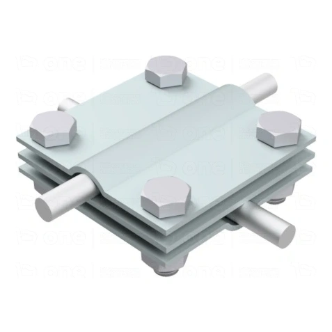 Kreuzverbinder 4-Loch 3-plattig dient zur Herstellung dauerhafter Kreuzverbindungen von Rund- und Flachleitern in Blitzschutzanlagen. Dies ist ein zuverlässiges Element des Blitzschutzsystems, das sich sowohl auf Dächern als auch in erdverlegten Installationen bewährt.