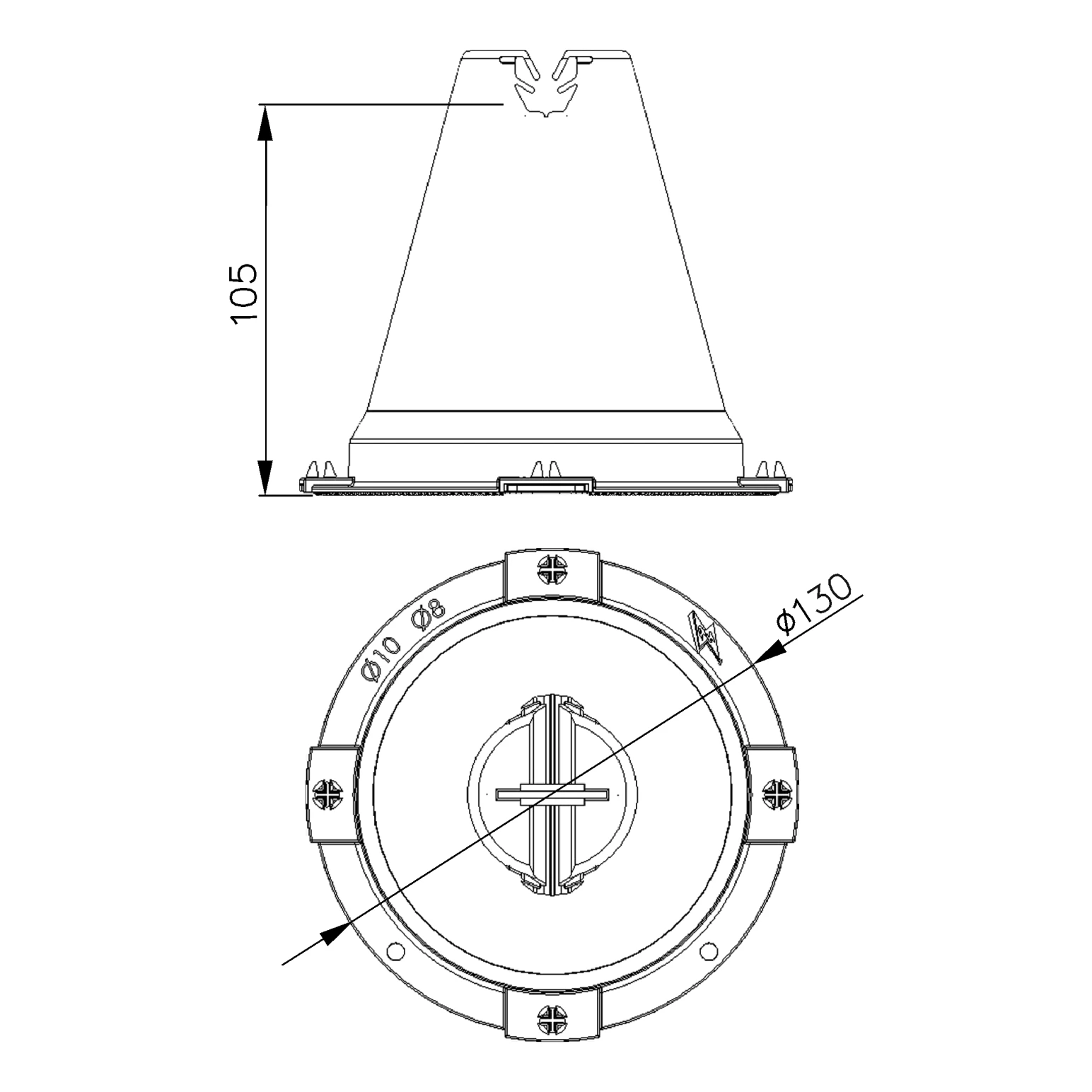 - Grundflächendurchmesser: Ø130 mm