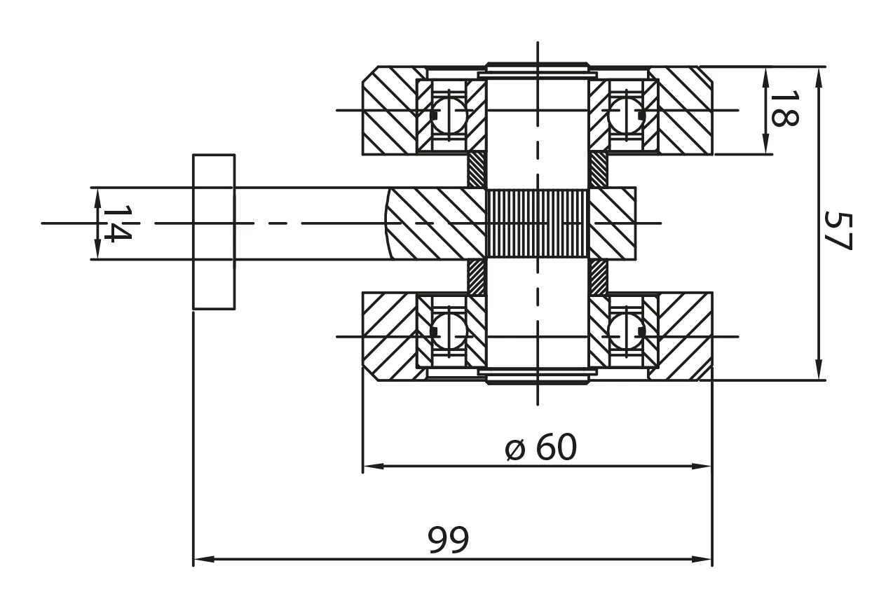 - Breite einer einzelnen unteren Rolle: 18 mm